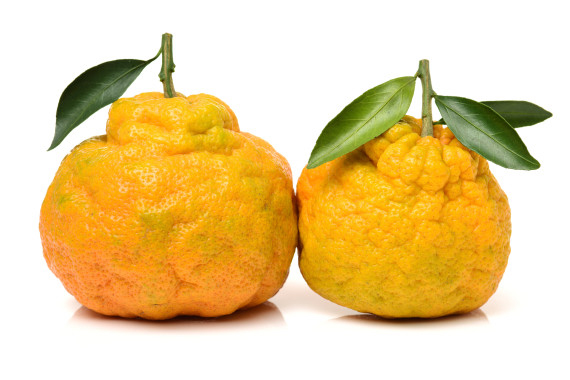 Uglifruit was discovered growing wild by a gentleman named F. G. Sharp at Trout Hall, near Brown's Town in Jamaica over 80 years ago. His subsequent pollination forays involved repeated grafts onto sour orange, each time regrafting the resulting fruit with the fewest seeds. Sharp exported his uglies to England and Canada in the 1930s, then to New York City in 1942. Although nearly all the related seedlings being studied at the University of California were destroyed when the campus was expanded in 1951, four seedlings were saved for posterity. The ugli fruit is so exclusive in the citrus community that it's earned its own class designation. Now believed to be a hybrid between a grapefruit, a Seville orange and a tangerine [ or pomelo] the ugli fruit is a member of the citrus family. It has a number of step-siblings, such as the Seminole, Nova, and Orlando. The''Minneola'' tangelo variety is a Bown grapefruit and Dancy tangerine cross, while the ''Nova'' is a Clementine tangerine and ''Orlando'' tangelo hybrid.